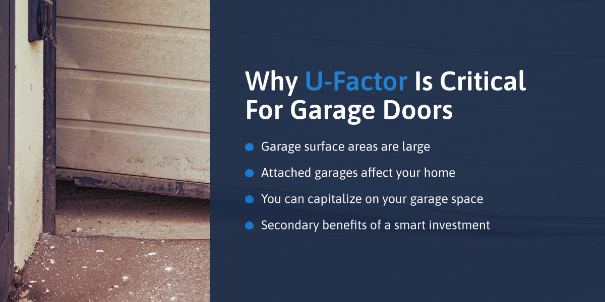 - You can capitalize on your garage space: Whether the garage is attached or not, having a low U-factor lets you maximize your garage. You can turn it into a gym, workshop, playroom or temporary living area and not have to worry about the efficiency of the door.